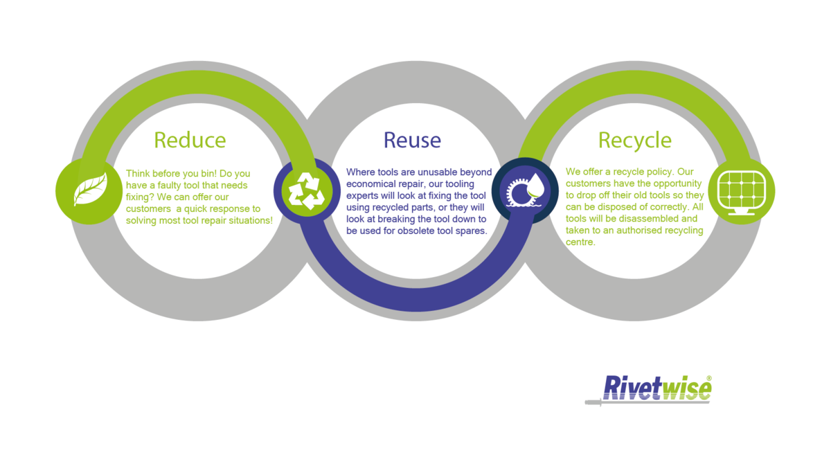 To find out more about our Reduce, Reuse, Recycle Scheme contact: 0121 766 5445 or email sales@rivetwise.co.uk